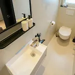 As casas de banho incluem casa de banho separada e chuveiro, juntamente com comodidades como secador de cabelo e toalhas.